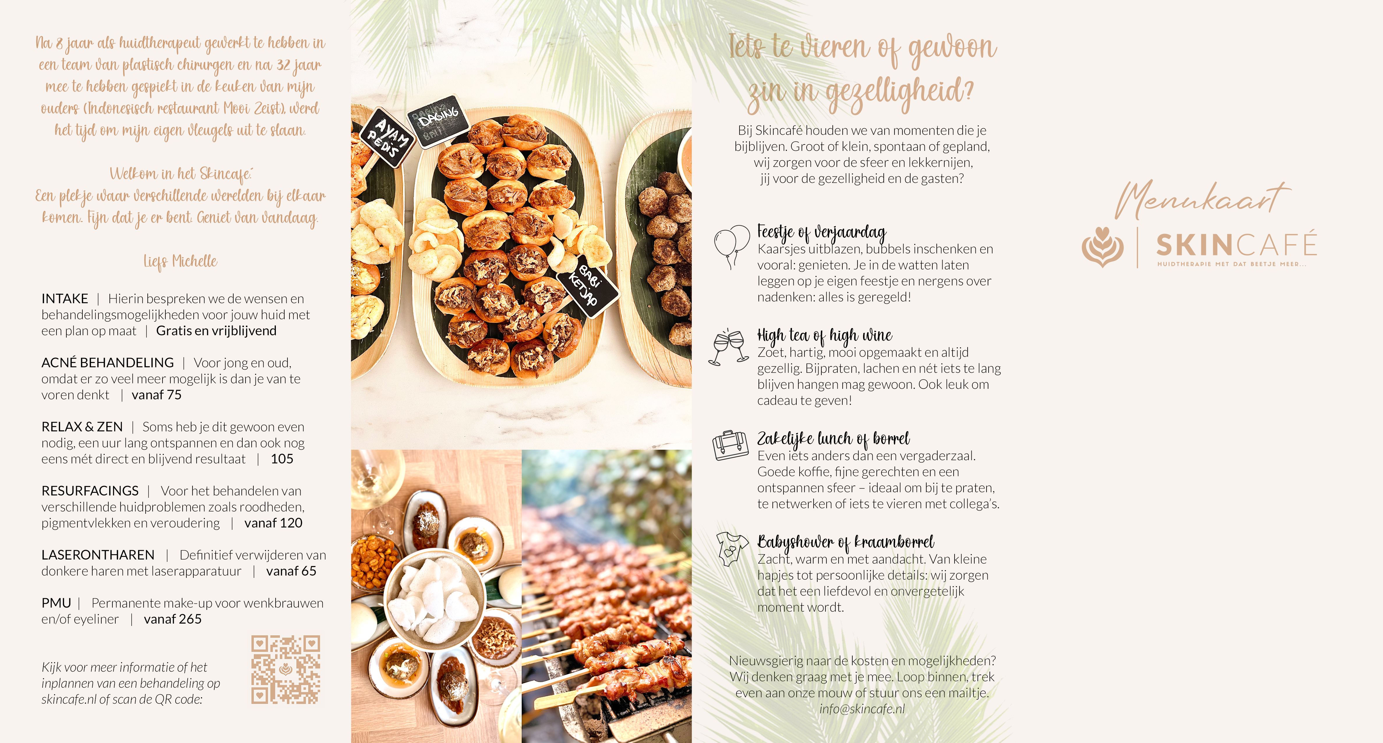 De meest intens lekkere 100% biologische Manetti koffie en lekkernijen uit eigen keuken, fijne ontbijtjes, smaakvolle (Indonesische) lunchgerechten of een borrelplank met een wijntje. Prikkel je zintuigen en kom genieten in het Skincafé in hartje Hoevelaken…
